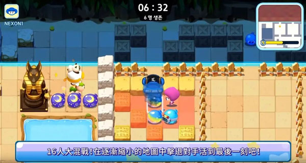 简单来说的话吃鸡的爆爆王啦!在逐渐缩小的地图中击退对方活到最后一个!16个人大混战模式。