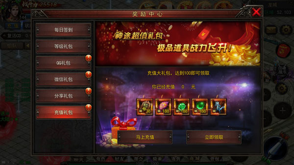 1、每日礼包:每天登陆,超过5分钟后,都可以寻找天机老人,领取每日礼包。