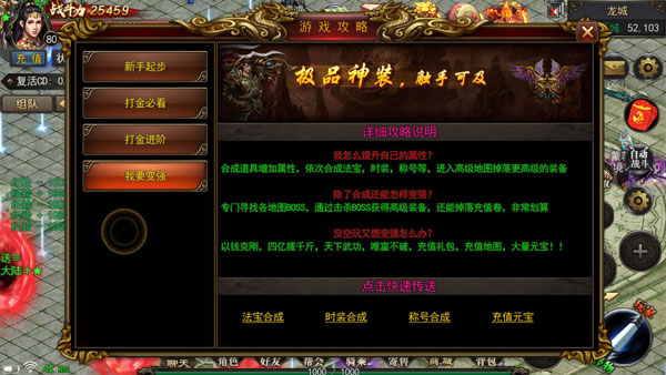 2、已经处于游戏顶端的你,怎么可以没有顶级装备?参与古墓宝藏、夺宝大厅等活动,可以让你拥有与实力匹配的财富和装备。
