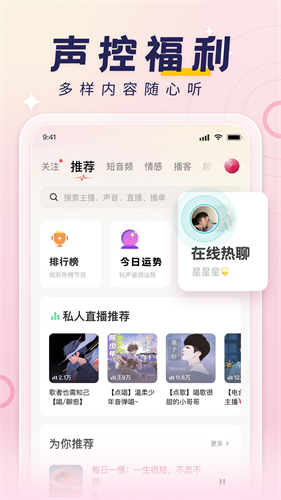 无论低沉沙哑、温柔亲切的男声,还是知性治愈、酥软萌萌的女声,都在等你一对一连线呢!无论多漫长孤独的夜,一定会有一个暖心的声音陪