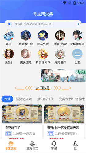 寻宝网交易是一款由完美世界官方合作推出的虚拟物品交易平台。这个平台为用户提供了丰富多样的游戏交易服务。用户可以自由地在这里进行手游账号的交易,同时还能进行皮肤、钻石、金币等各种游戏资源的交易。除此之外,寻宝网交易还提供账号租赁和游戏代练等服务,满足玩家们的各种需求。