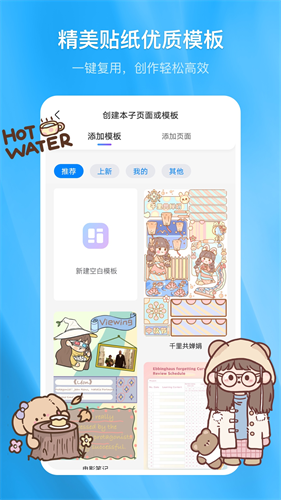 2、贴纸多多,模板好看,本子精美,支持自己导入pdf,让你素材不重样,分分钟做好一篇手帐