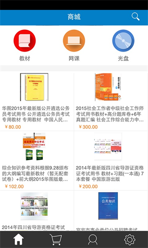 2、参阅辅导教材、试卷、光盘、网课手机商城,让你在手机上随时可购买。