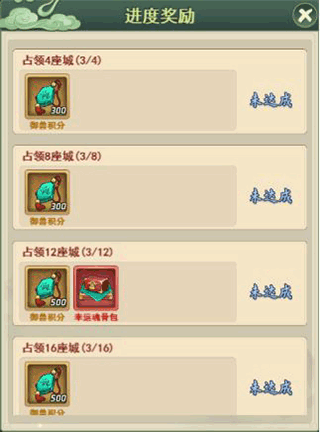 4、进度奖励,当御兽师占领城池达到一定的数量可进行领取奖励;