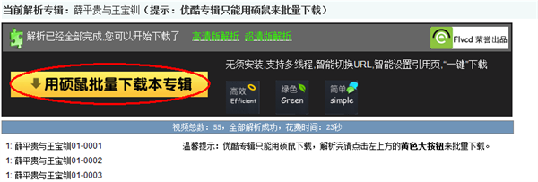 稍等半晌便可完成解析,然后点击用硕鼠批量下载本专辑操控键位: