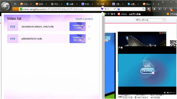 6.播放FLV视频时候,点击地址栏那边倒三角紫色操控键位,然后点击Download下载。