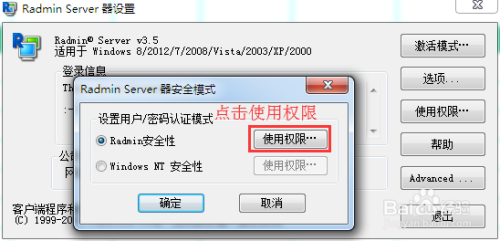 Radmin的重点配置是使用权限这个配置项,这里面是设置以何种方式授权用户访问,我们截图讲解一下: