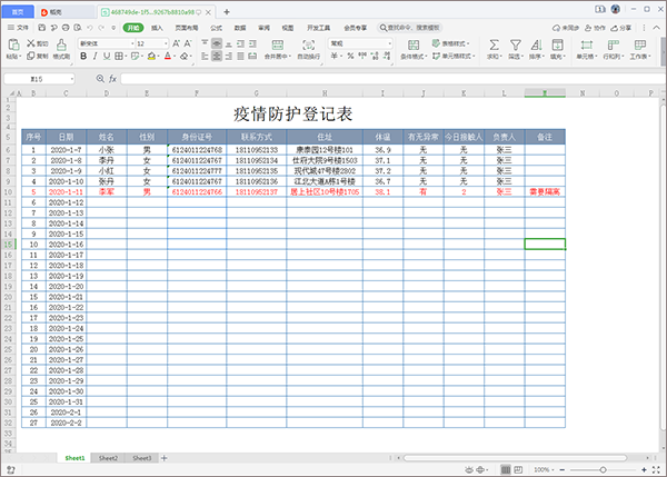 年关将至,疫情也开始出现反复,最新出台的相关政策基本都是鼓励当地过年,这边提供疫情期间可能会用到的疫情登记表格式模板,借助于Excel文档来完成创建,严格遵照时间节点、人员信息、住址、是否返乡、体温等信息收集项目来完成处理,建议多个人员一同返乡的时候带着这个表格。