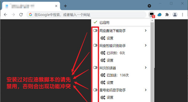 若是之前装载过对应助理的油猴版本,请先禁用,不然会和本插件呈现性能反复。